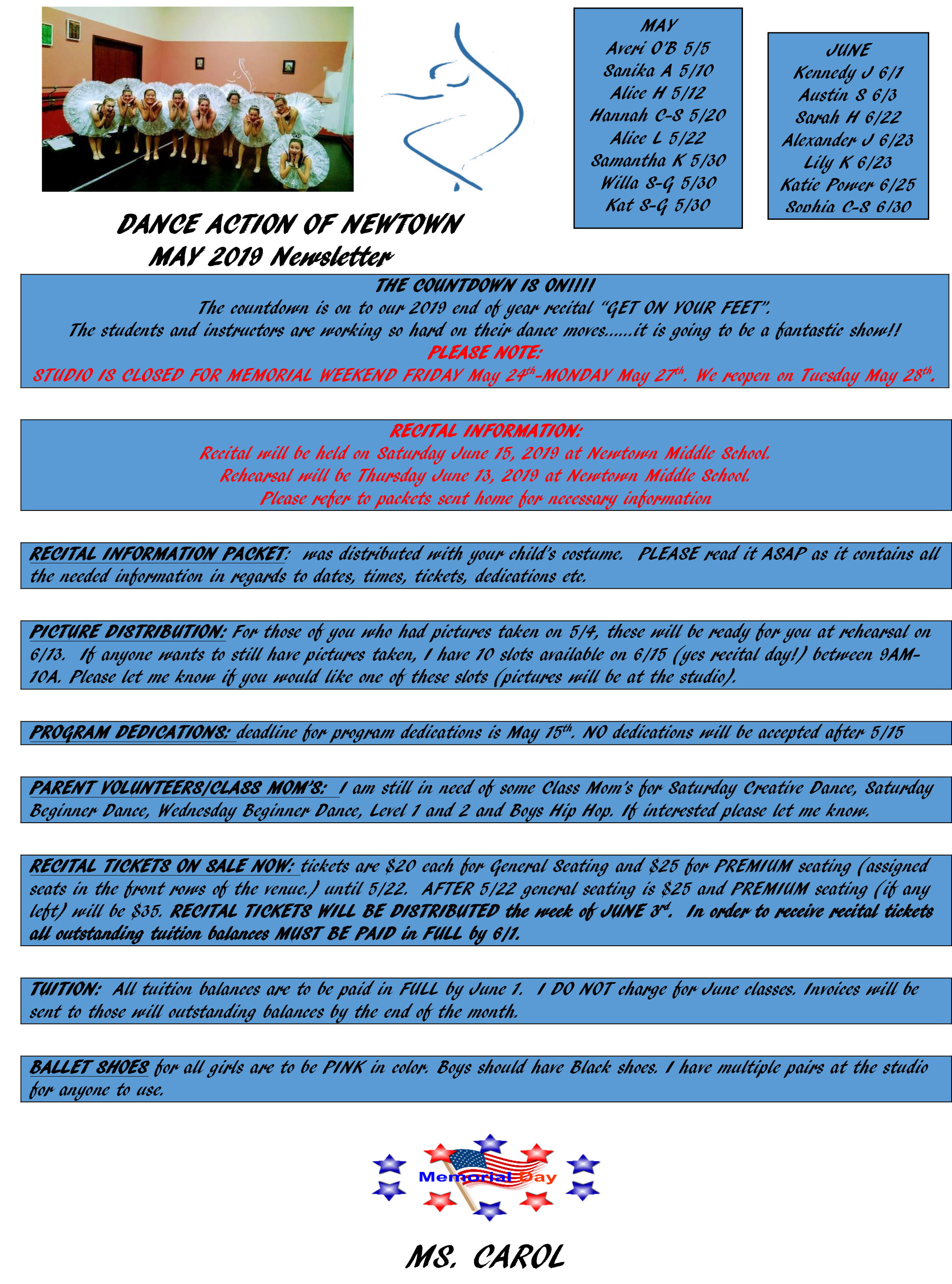 DANCE ACTION OF NEWTOWN May Newsletter Posted on May 14, 2019May 14, 2019 by danceaction ← Previous Next →
